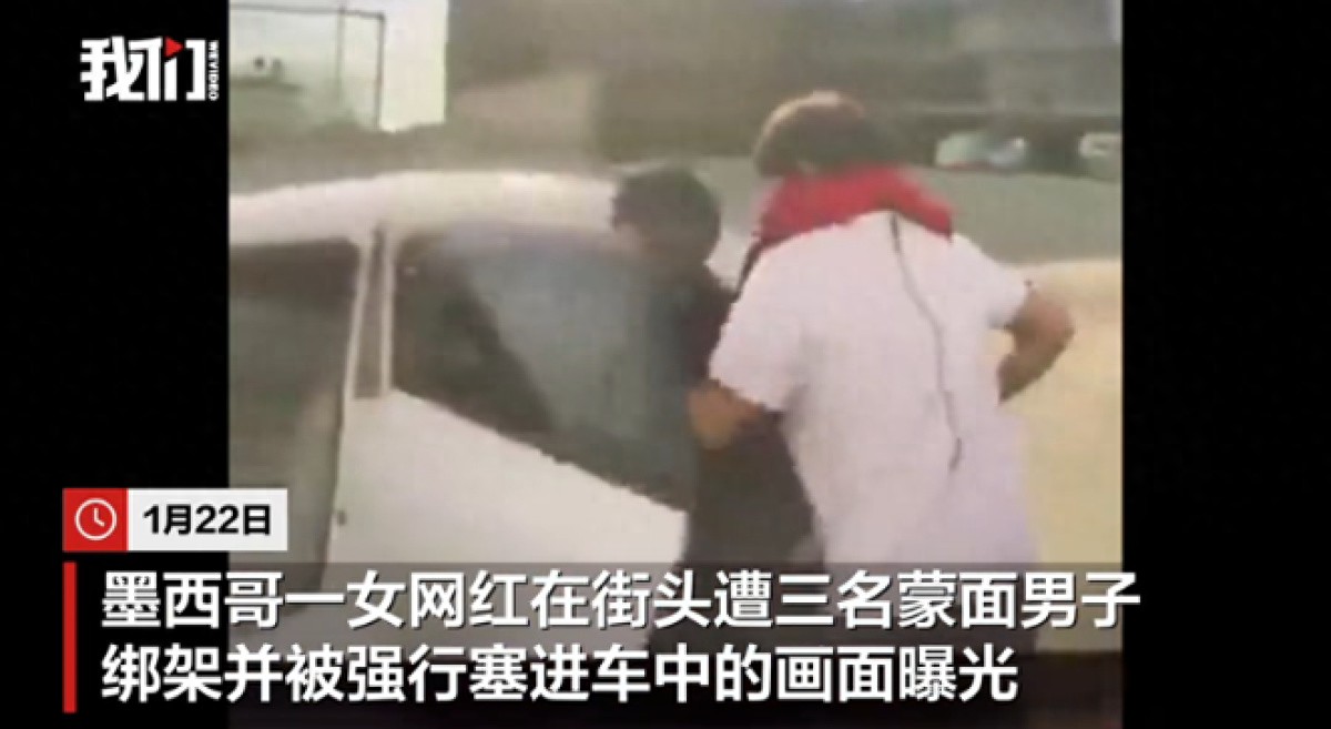 1月22日,墨西哥一女网红在街头遭三名蒙面男子绑架,并被强行塞进车中的画面曝光。事发20日,这名女网红在锡那罗亚州一家购物中心外准备驾车离开时遭绑架。