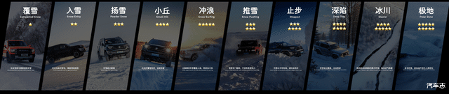 长城汽车将雪地、山地、沙地、泥地这四大典型越野场景,进行归纳细分,从1级到最高10级,越野难度与风险程度依次递增。用户不仅要懂自己的车,也要了解自己要去的场地,才能更安全。