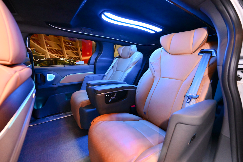 格瑞维亚行政至尊版,35.98万元起升级定制豪华航空座椅,标配原车安全气囊,支持电动调节躺平模式,兼具通风、加热、智能按摩功能;配备劳斯莱斯同款星空顶采用进口麂皮绒材质,搭配高级冲孔工艺,车内顶部空间提升4~6cm,内部空间更开阔;具备流星、繁星等多种星空模式,支持声音联动控制。搭配64色氛围灯,支持车机、手机等多端控制,多种场景一键切换。可选配吸顶娱乐系统与智能座舱系统,兼顾商途高效与家旅舒心。