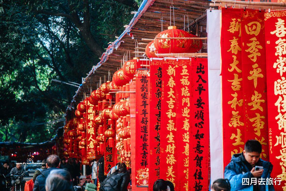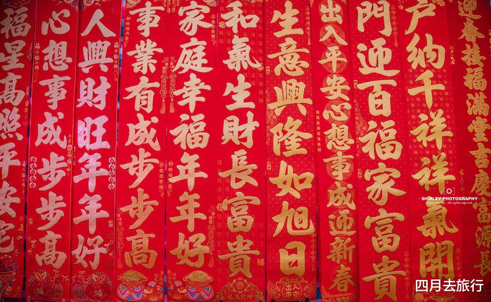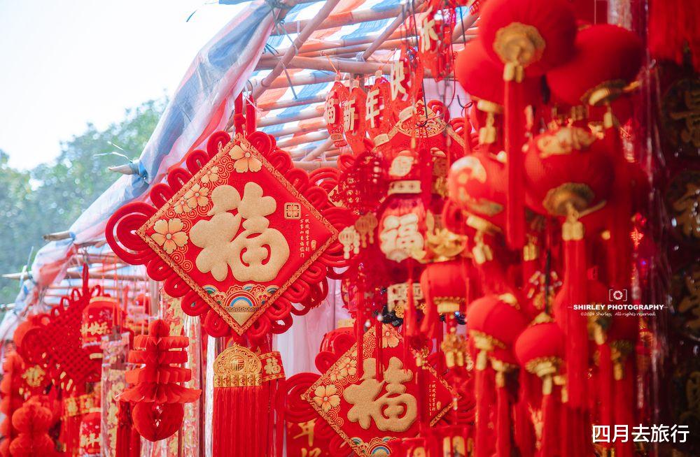 交易场里,各式各样的平价对联,福字、灯笼、红包、中国结、生肖玩偶等春节装饰一应俱全,摆放在店铺的显眼位置,带着人们对新春的期许。整条街在店主们内卷之下,年味满得快要溢出来!本来我们只是来游玩拍照的,最后还是被市场里的氛围所感染,挑了两对春联带回家。虽然网购选择多,但是线下购买所见即所得,也更有节日仪式感。