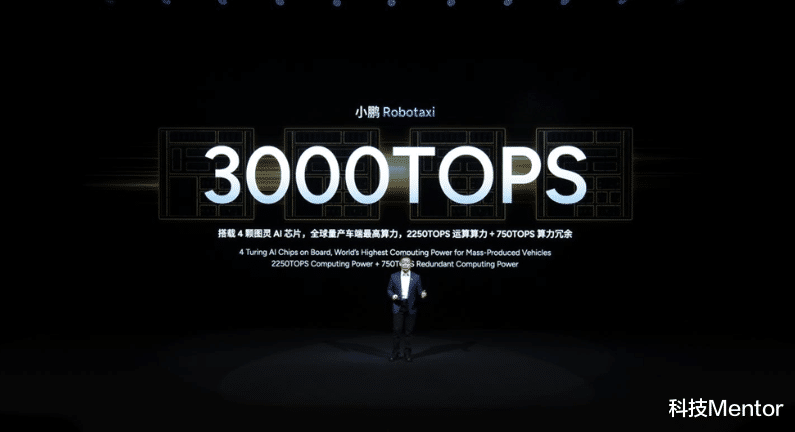 四颗图灵AI芯片,3000TOPS算力,全球最高级别。
