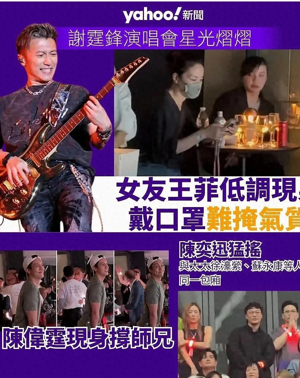 于4月26日举行的谢霆锋连续四场演唱会中的第三场表演中,他的两位儿子特别前来为他加油打气,共同分享了这个特别的夜晚。 第二场演出中,女友王菲专程赴港,二人在舞台上深情凝视,共同演绎了经典曲目《玉蝴蝶》,那一刻充满了浪漫与默契。