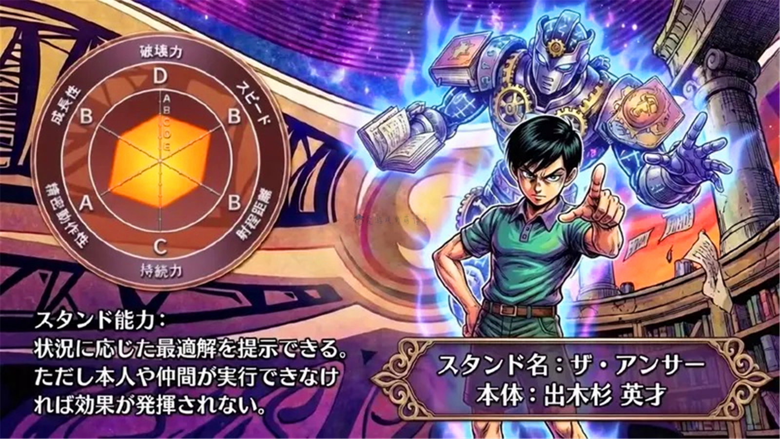 替身能力:能针对现状提示最优解,但若本人或同伴无法执行该方案,则无法发挥效果