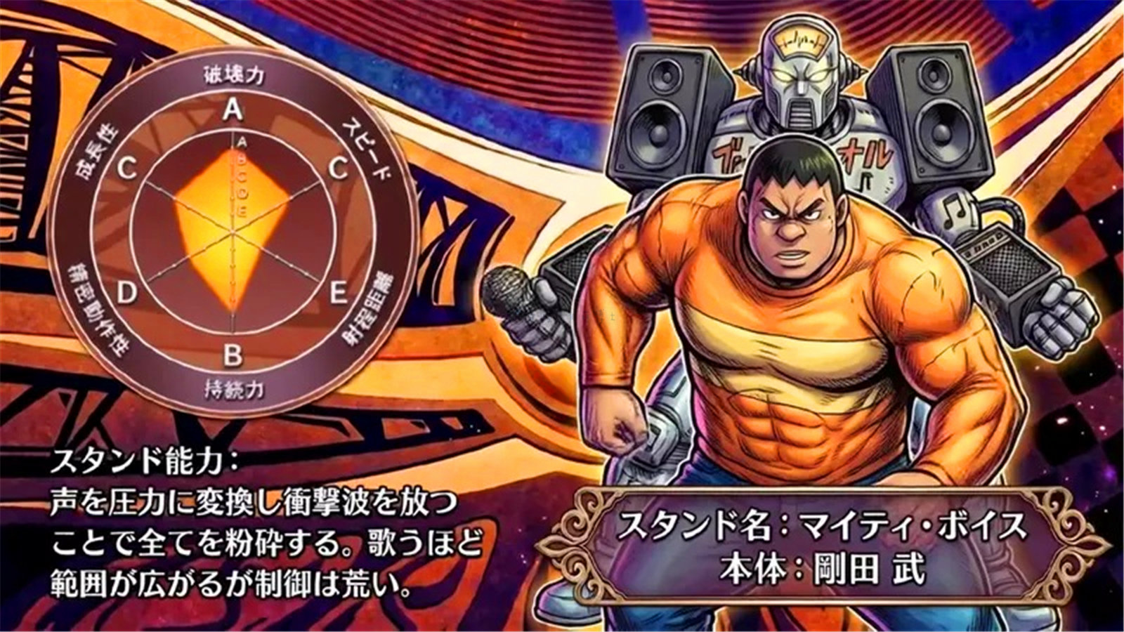 替身能力:声音转换为压力并释放冲击波,粉碎一切。