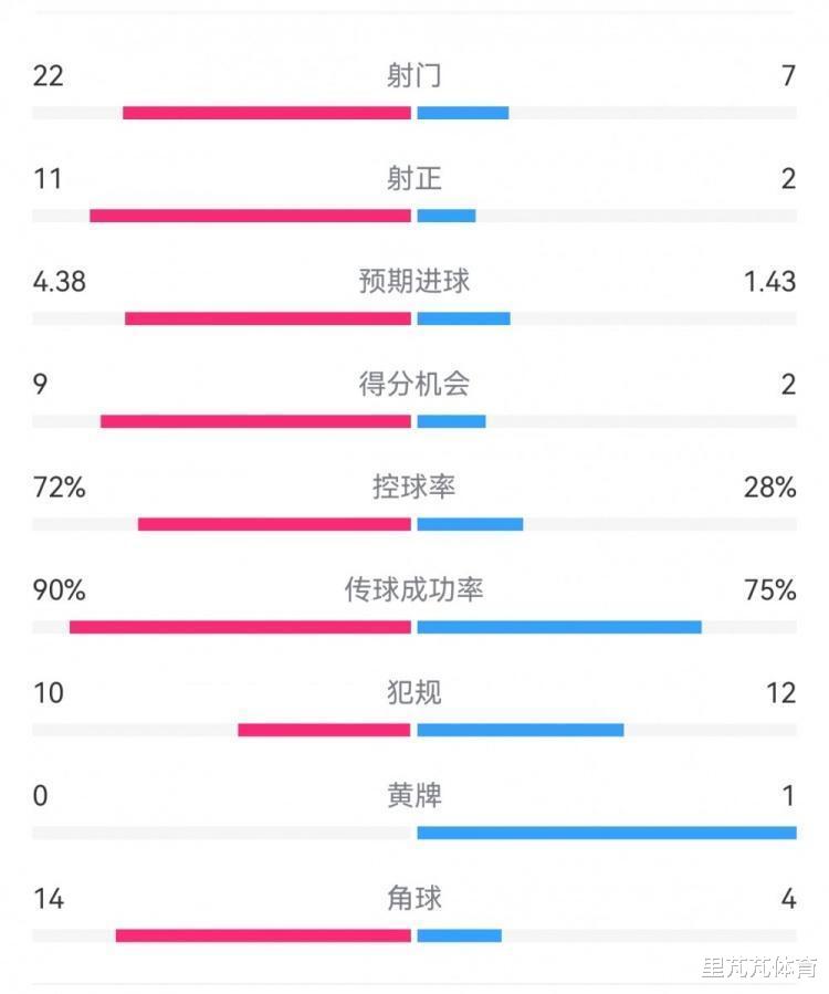 巴萨这射门效率实在是太高了,22脚射门11次射正就完成了7个进球,的确是够狠。