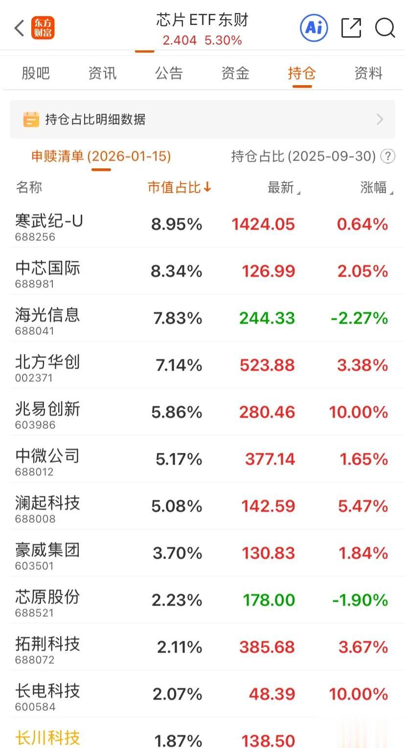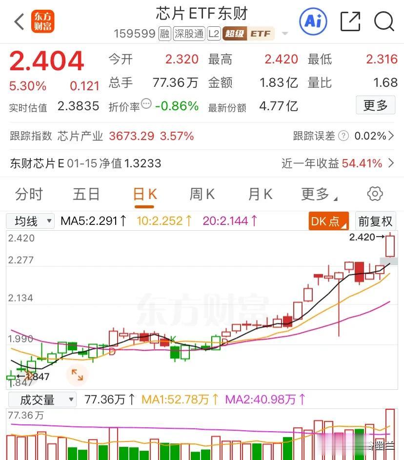 看着这么热闹的行情,咱们普通投资者咋办?别急,有个芯片ETF东财(159599),跟踪的是中证芯片产业指数,中芯国际、寒武纪、海光信息这些龙头都在里面,代表性很强。截至中午收盘,这ETF都大涨3.02%了,成交额快1个亿,说明大家都看好这一块。