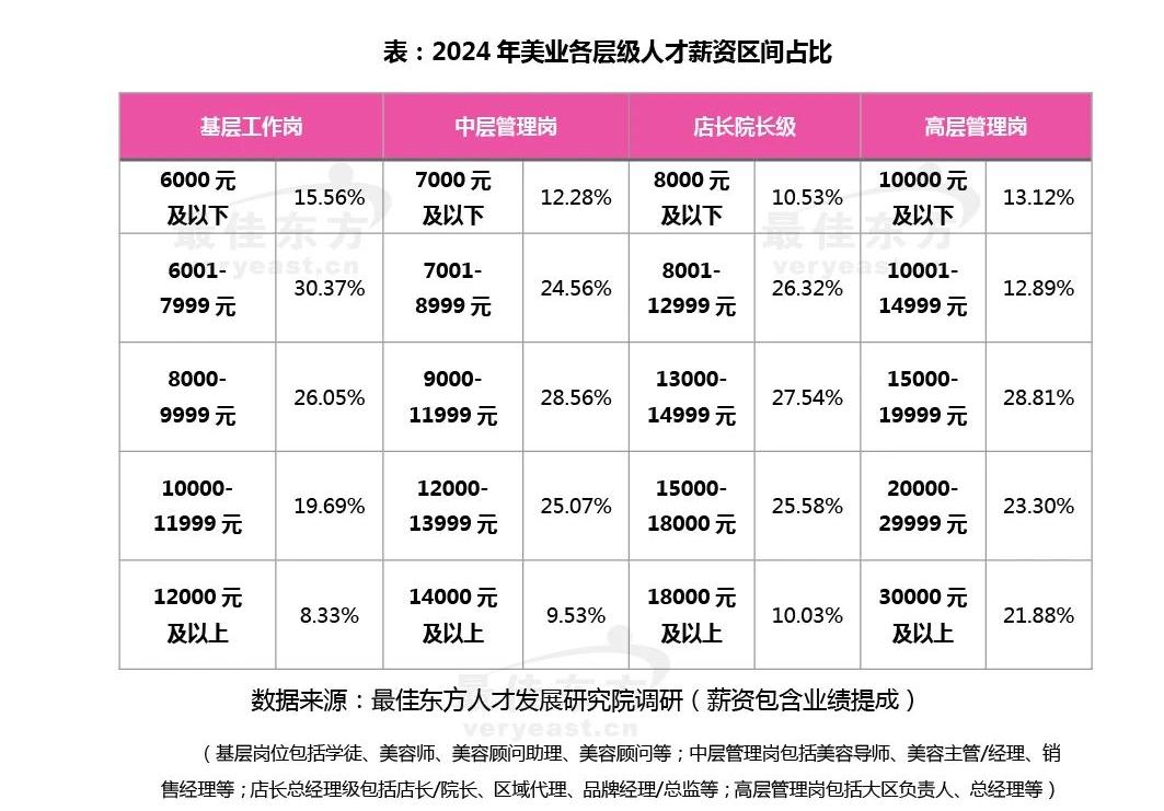 先查行业基准:通过最佳东方美业薪资大数据,快速了解基层工作岗、中层管理岗、店长院长级、高层管理岗薪资区间占比,避免漫天要价或吃亏压价;