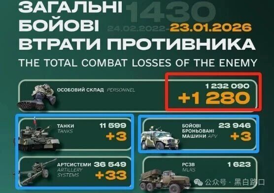 俄乌战争第1430天(2026年1月23日),过去24小时大事件概述如下: