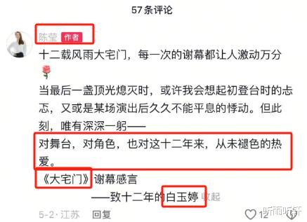 在角色“白玉婷”下,吸引大家的原来还是我们的老朋友,在评论区中,可以看到陈莹激动的话语,她表明:对舞台,对角色,也对这十二年来,从未褪色的热爱。