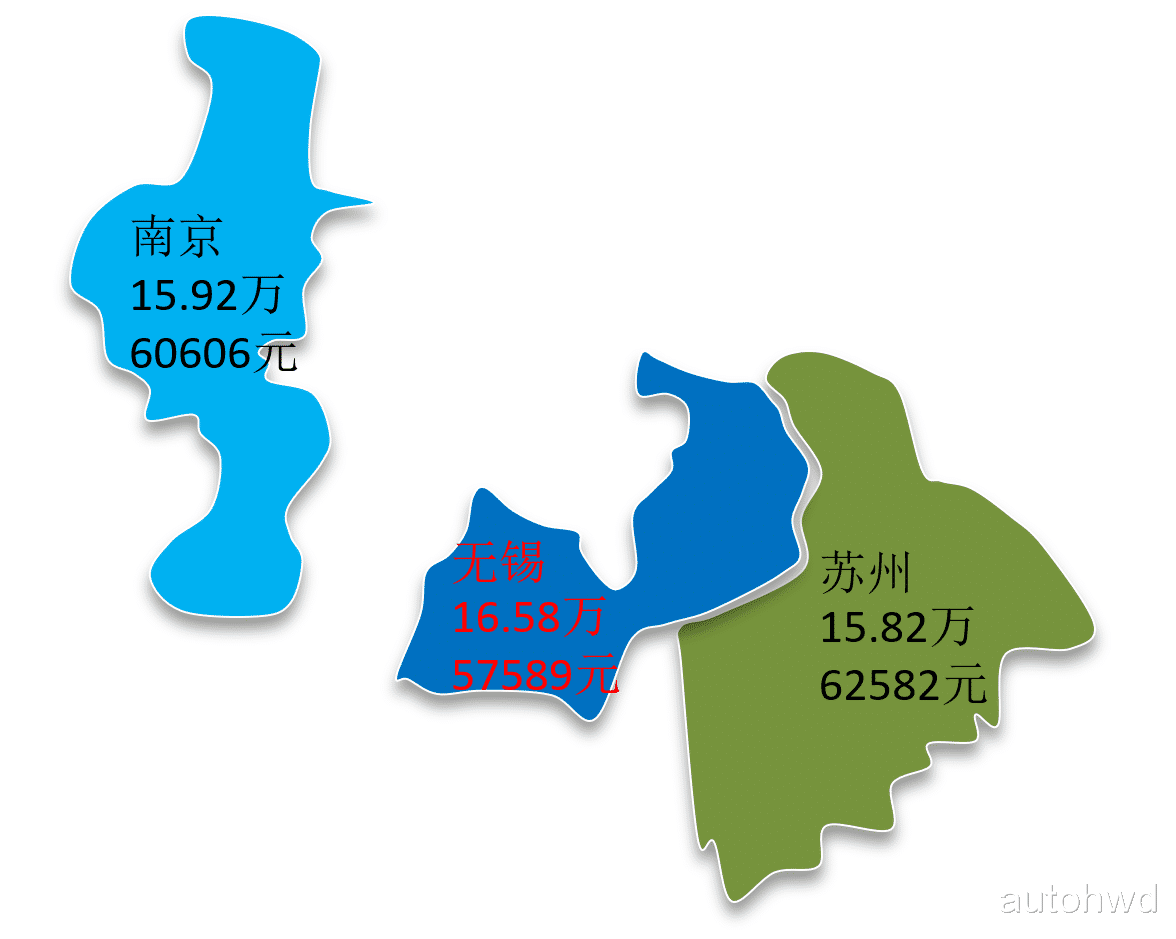 江苏经济最发达的自然在苏南,而在苏南经济最发达的三个城市自然是苏州、南京和无锡。三个城市中,无锡的人均GDP最高,达到16.58万,而无锡的人均可支配收入最低,只有57589万,而苏州的人均GDP最低,但人均可支配收入却最高,达到62582万。