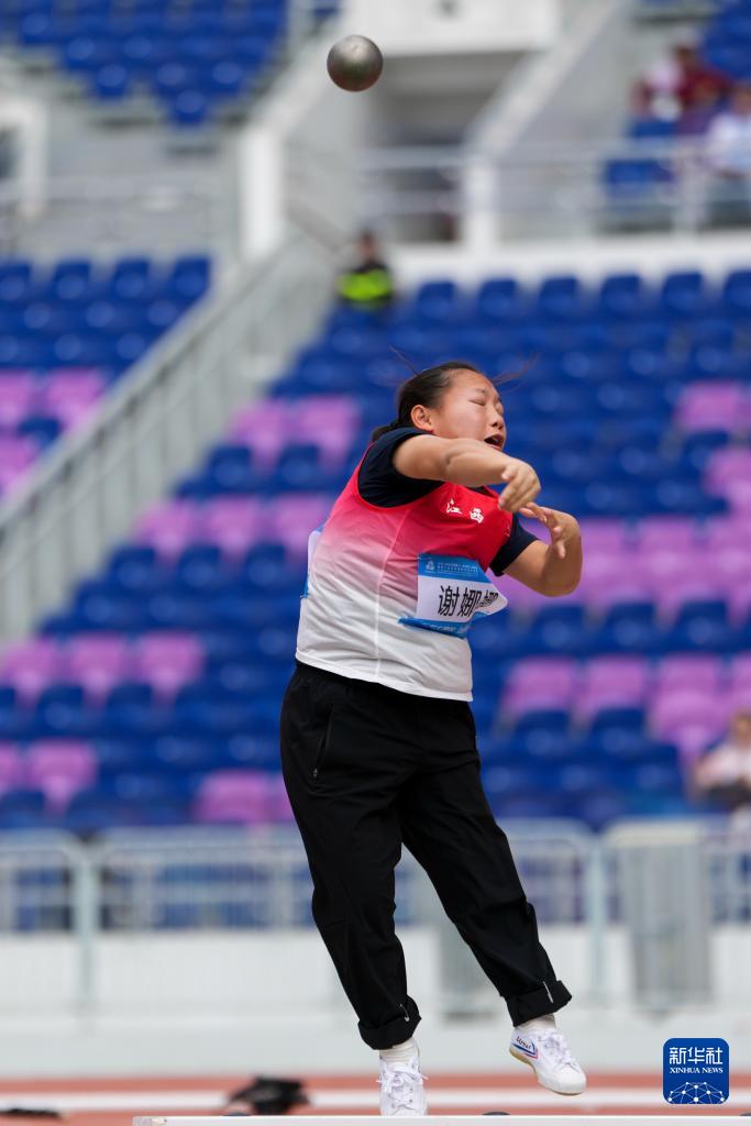 12月12日,全国第十二届残疾人运动会暨第九届特殊奥林匹克运动会田径女子铅球F41级决赛在广州举行。图为江西队选手谢娜娜在比赛中。她最终以8.89米的成绩创全国纪录,获得第一名。 新华社记者 刘梦琪 摄