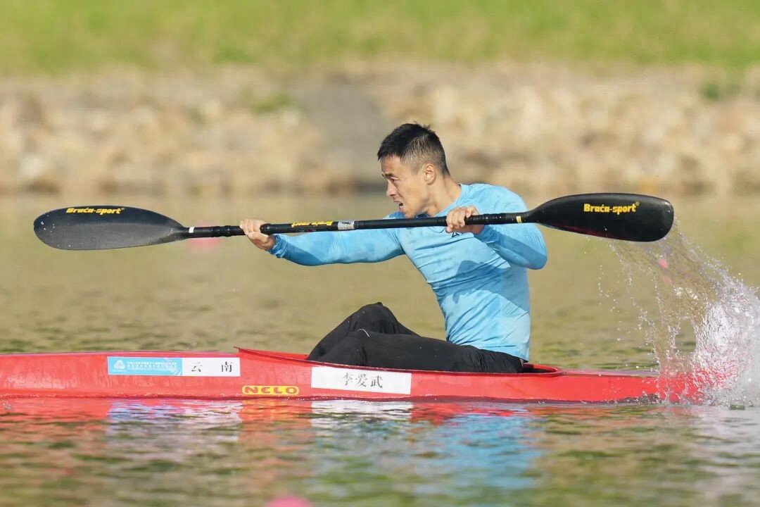 12月11日,全国第十二届残疾人运动会暨第九届特殊奥林匹克运动会皮划艇项目男子500米 KL3级决赛在广东国际划船中心举行。图为云南队选手李爱武在比赛中。 王鹏 摄