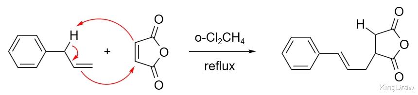 马来酸酐能够参与很多的 Ene 反应,这是因为两个吸电子的羰基的综合作用使其严重缺电子。