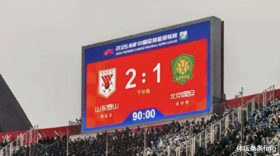 中超联赛第2轮,今天进行了4场比赛。在15点30分,山东泰山坐镇主场迎战强敌北京国安。凭借着谢文能在比赛的第49分钟以及克雷桑在比赛88分钟的进球,最终山东泰山2-1击败了北京国安。
