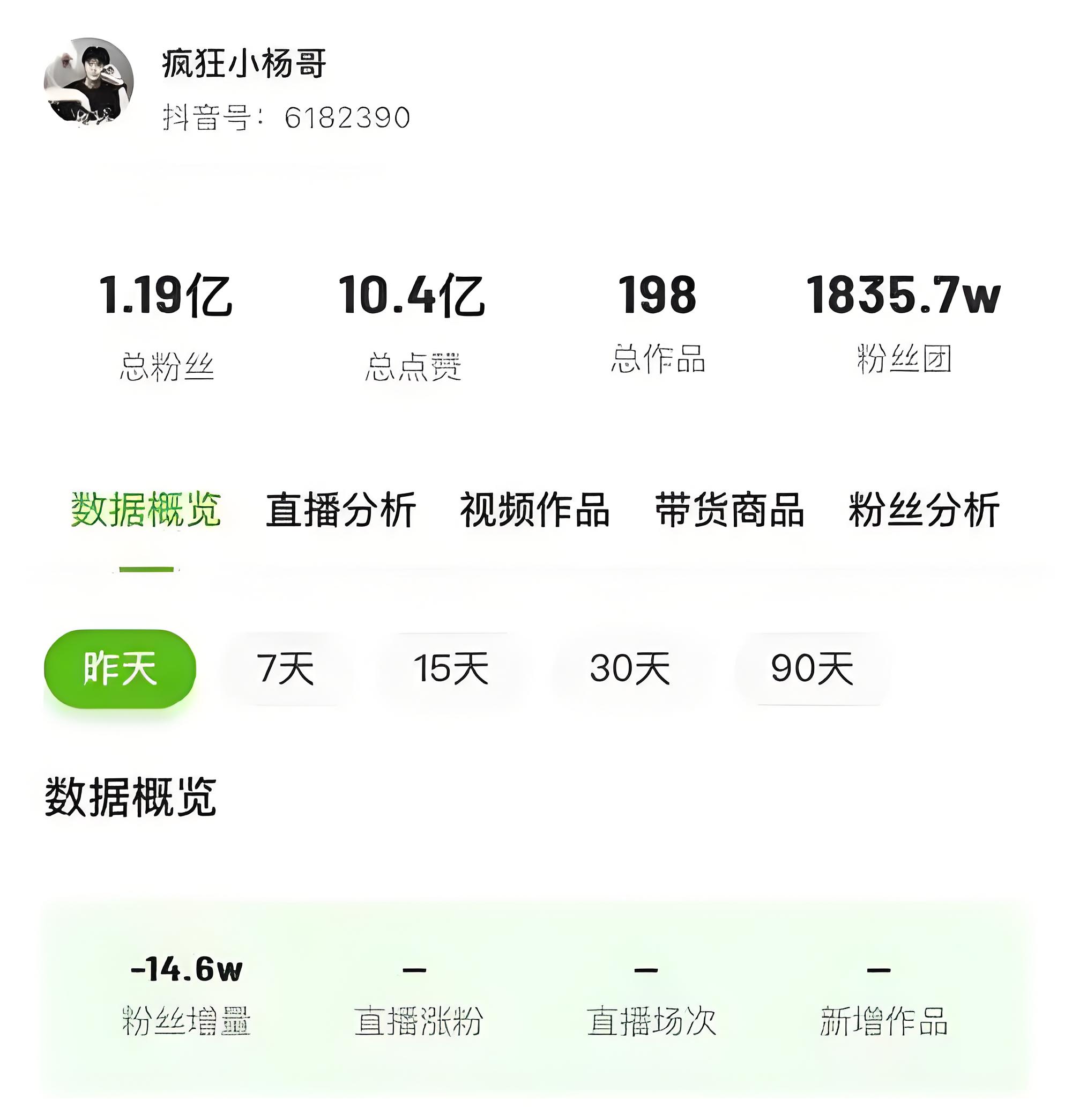 在2024年9月之前,小杨哥还是那个在抖音上拥有超过1.2亿粉丝的超级网红。他的每一条视频都能引发数百万的点赞和评论,他的直播间更是人气爆棚,带货能力惊人。然而,仅仅半年时间,这一切就发生了翻天覆地的变化。据数据显示,自2024年9月至2025年3月,小杨哥的抖音粉丝数量从巅峰时期的1.22亿骤降至约1.08亿,半年内掉粉超1200万!这一数字不仅令人咋舌,更让小杨哥的网红生涯蒙上了一层阴影。