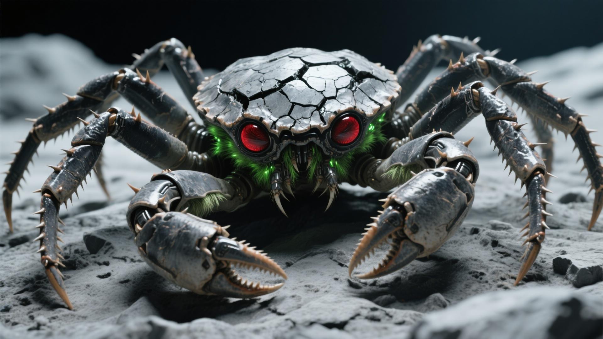 其中一名宇航员的日志被人解密,里面写着:“那些石头在呼吸,它们在盯着我们”。一开始以为是太空服供氧系统出了问题,直到他用取样器戳向那块“岩石”——“岩石”突然收缩了一下,表面裂开细密的缝,露出里面泛着寒光的绒毛和一对猩红的复眼!它们是活的!是能伪装成岩石的蟹形怪物,八条腿上全是倒钩,螯肢开合间,能咬碎钛合金。更恐怖的是,他们在月球背面的永久阴影区,找到了一艘坠毁的外星飞船,船体像溃烂的皮肤一样剥落,船舱里躺着一具“三眼女尸”,第三只眼还圆睁着,像是在诅咒所有闯入者。这些画面,全被实时传回了NASA的秘密控制室。