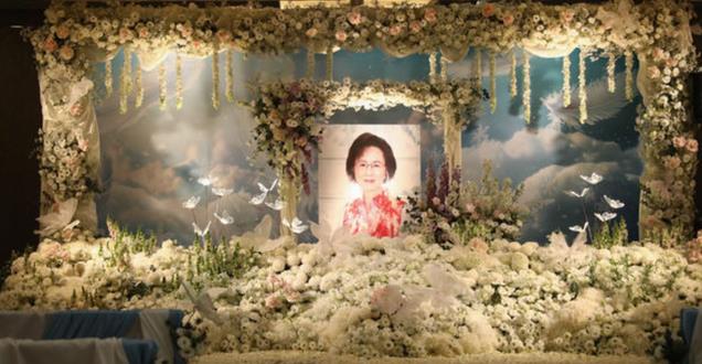 除了遗像之外,装殓琼瑶骨灰的棺材也是使用的白色棺材,而棺材的周围也是摆满了白色的花朵。言情作家琼瑶一生写出了无数的作品,无论是《窗外》、《情深深雨蒙蒙》还是《梅花三弄》、《还珠格格》,这些作品都给人留下了深刻的印象,而琼瑶塑造的一个个痴情的角色也是让网友难以忘怀。