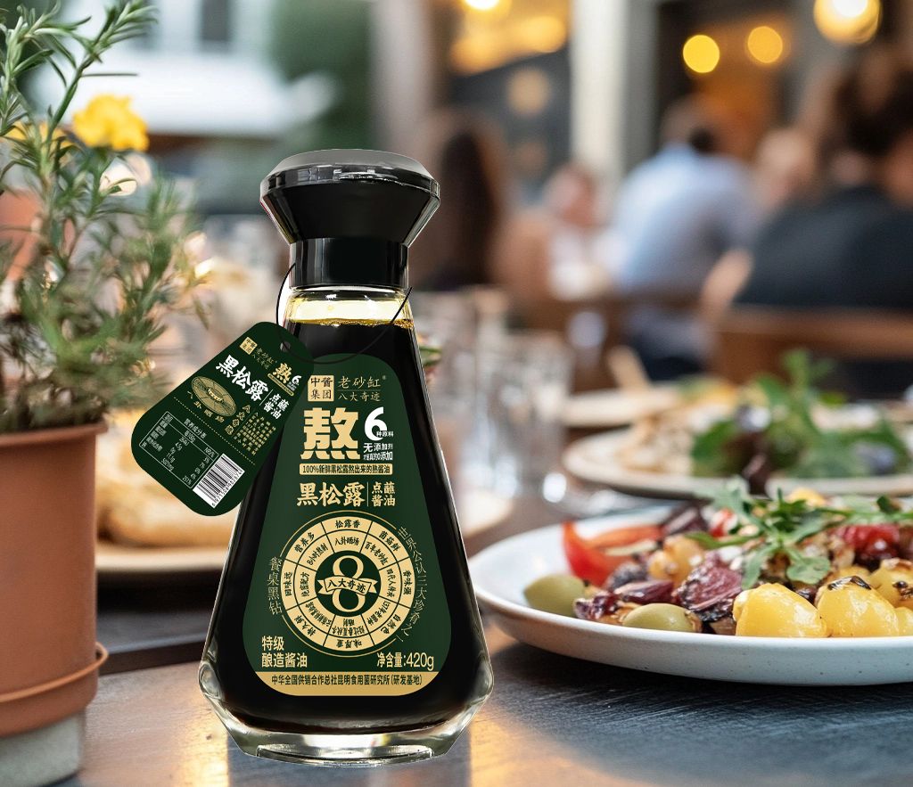 经过这样长时间的晒制,中酱集团的黑松露酱油不仅具有传统酱油的醇厚风味,更增添了黑松露的神秘香气。每一滴酱油都仿佛是大自然与传统工艺的完美结晶,它蕴含着阳光的温暖、四季的更迭以及黑松露的独特魅力。无论是用来凉拌、红烧还是蘸食,这款黑松露酱油都能为菜肴带来别样的风味,让食客们在品尝美食的同时,也能感受到大自然和传统工艺的奇妙融合。