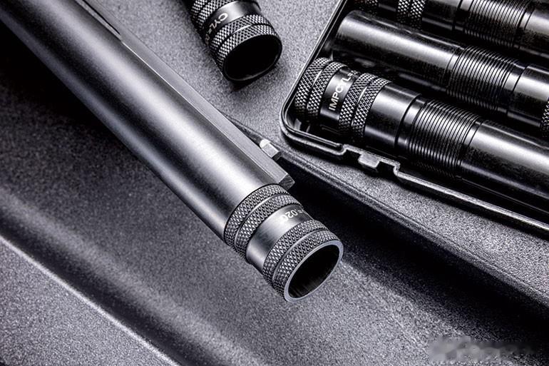 喉缩管外侧有滚花,便于安装和拆卸,而且标识清晰,无需数刻度来区分。它配备五根喉缩管:圆柱型、改良圆柱型、标准型、改良标准型和全缩口型。