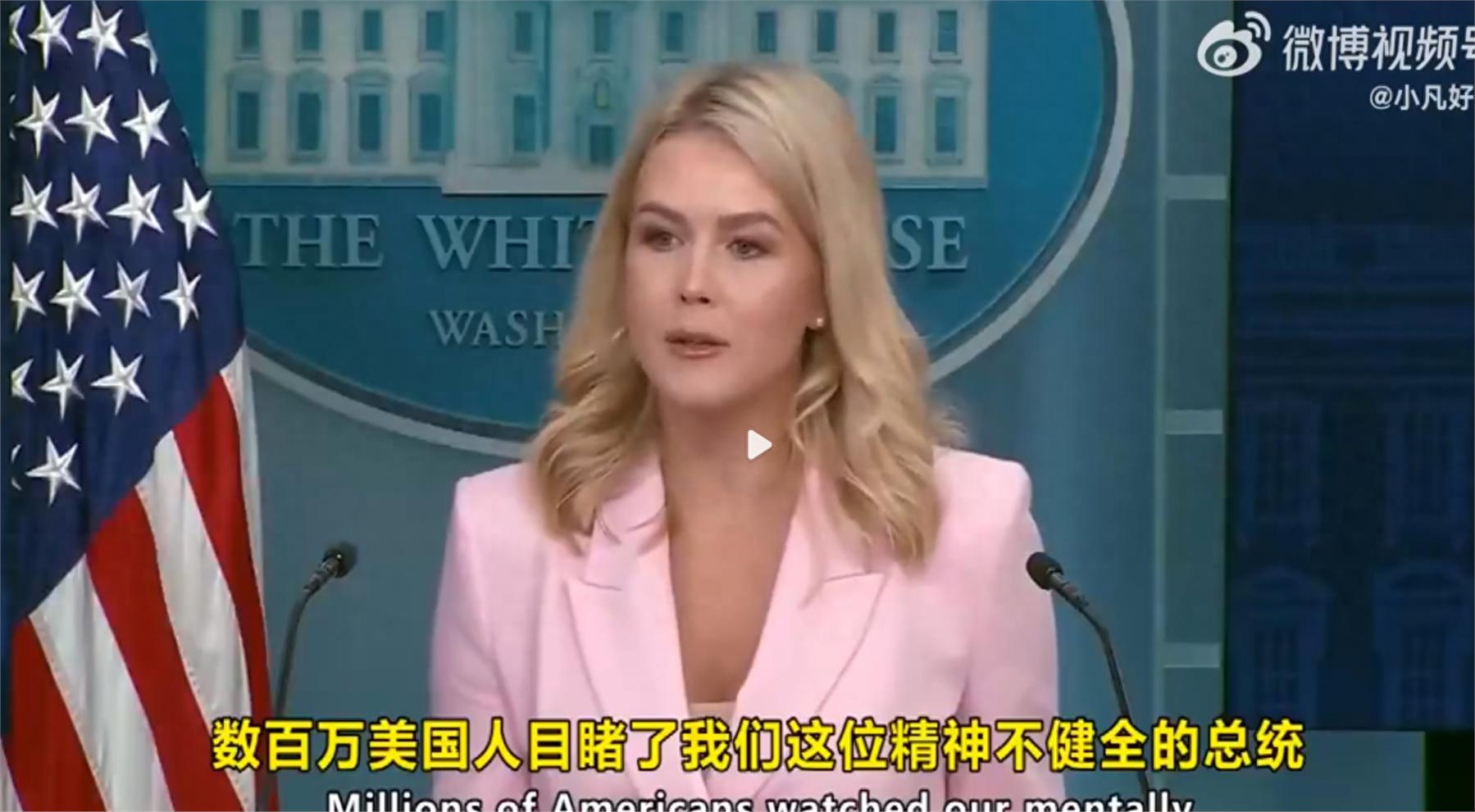 莱维特说:“数百万美国人目睹了我们精神失常的总统在日常工作中挣扎。我们眼睁睁地看着我们的国家因此被拖垮…………