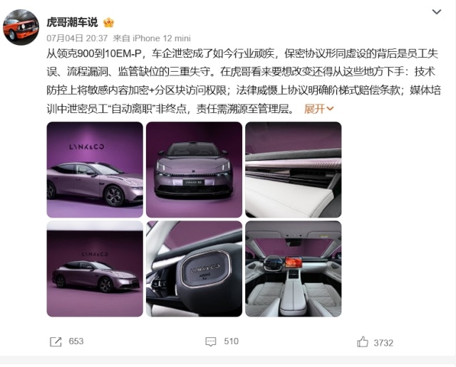 领克10EM-P新车图又被“内鬼”开盒,不过反转够快——陈震火速撇清关系,更魔幻的是泄密源头“天下秀广告有限公司”光速向领克低头认栽!想想年初某团队偷跑领克资料被判赔500万的血泪史,如今平台亲自下场玩泄密又光速滑跪道歉,这剧情比谍战片还离谱。领克工程师连夜改发布会的憋屈暂且不论,某些品牌的审核机制是摆设吗?