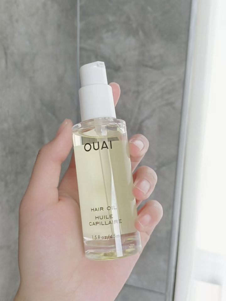 OUAI护发精油,2017年在洛杉矶成立,创始人是知名发型师,品牌主要做造型护理类产品,包装走简约风,瓶身设计比较适合摆拍,最初关注是因为看到不少博主卸妆包里都有它,后来自己查了背景才发现和好莱坞造型圈关系挺近。