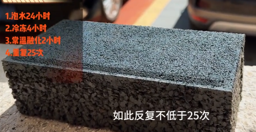(四)抗冻性试验:浸泡(24h±0.5h)、冷冻(不少于4h)、融化(不少于2h)、循环多次、检查记录。