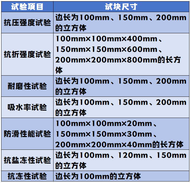 (三)试验方法:外观、尺寸、强度(抗压、抗折)、物理性能(耐磨、抗冻、吸水率、防滑、抗盐冻)。