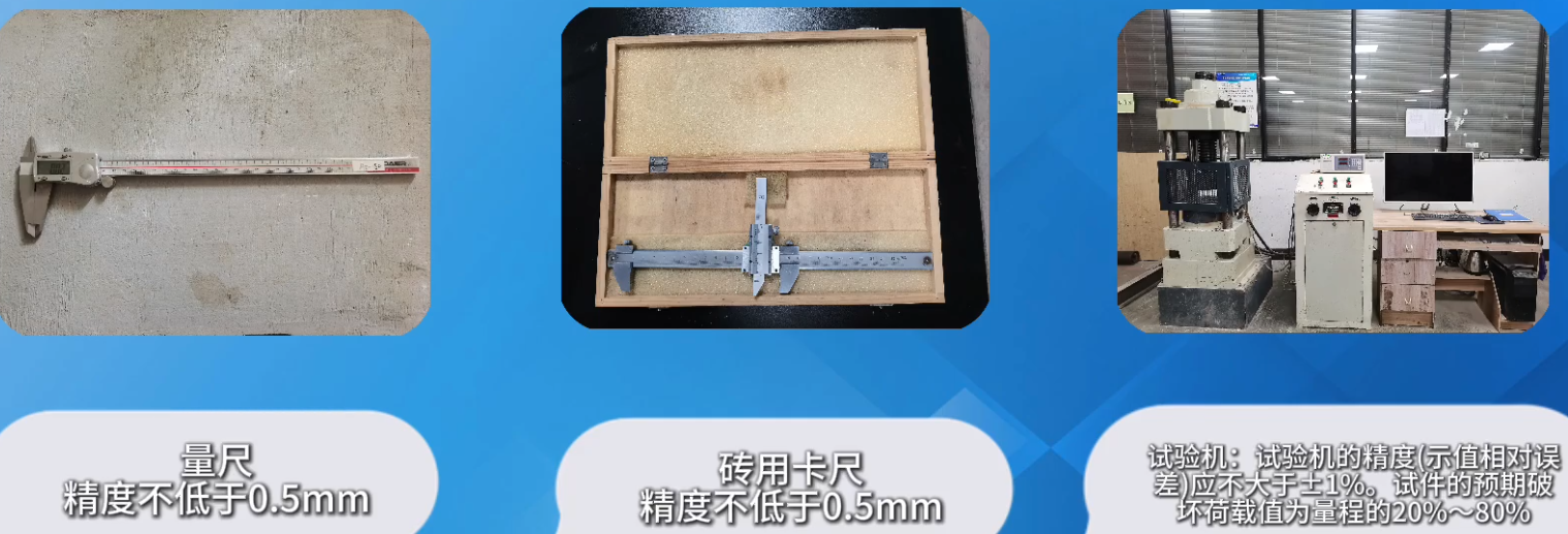 测量工具使用砖用卡尺测量长度、宽度和厚度。