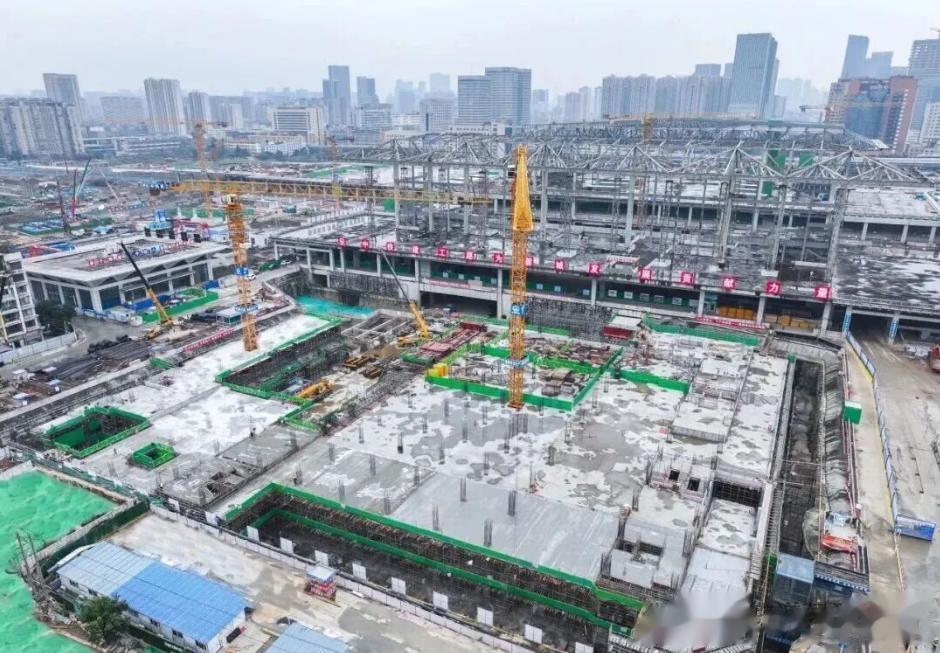 另据成都发布消息:2025年12月31日,成都站扩能改造工程北广场公交枢纽项目地下室负一层主体结构顺利实现封顶(上图),正式进入了地上主体结构全面施工的新阶段。