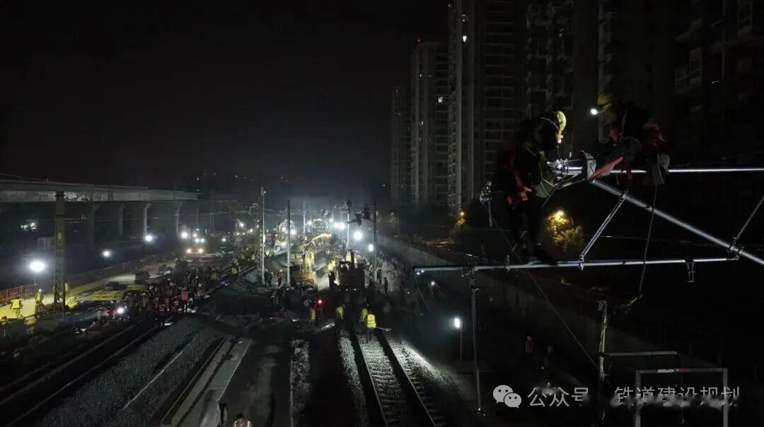 中铁八局成都车站扩能改造项目经理吴朝旭介绍,此次拨接施工涉及工务、电务、供电多个专业立体交叉施工,需要实现枢纽地区铁路正常运输与工程建设的同步推进。