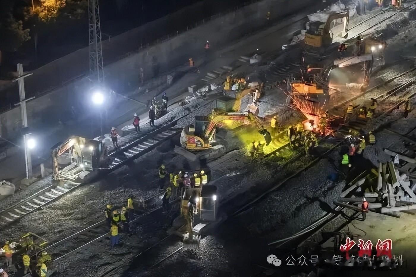 项目团队在拨接施工中采用“沙盘推演”、“模块化预拼装+分段突击”施工模式、“预铺轨排横移+精准拨接”的工艺,将原来需要5小时的作业时间压缩至了3小时,施工效率显著提升。