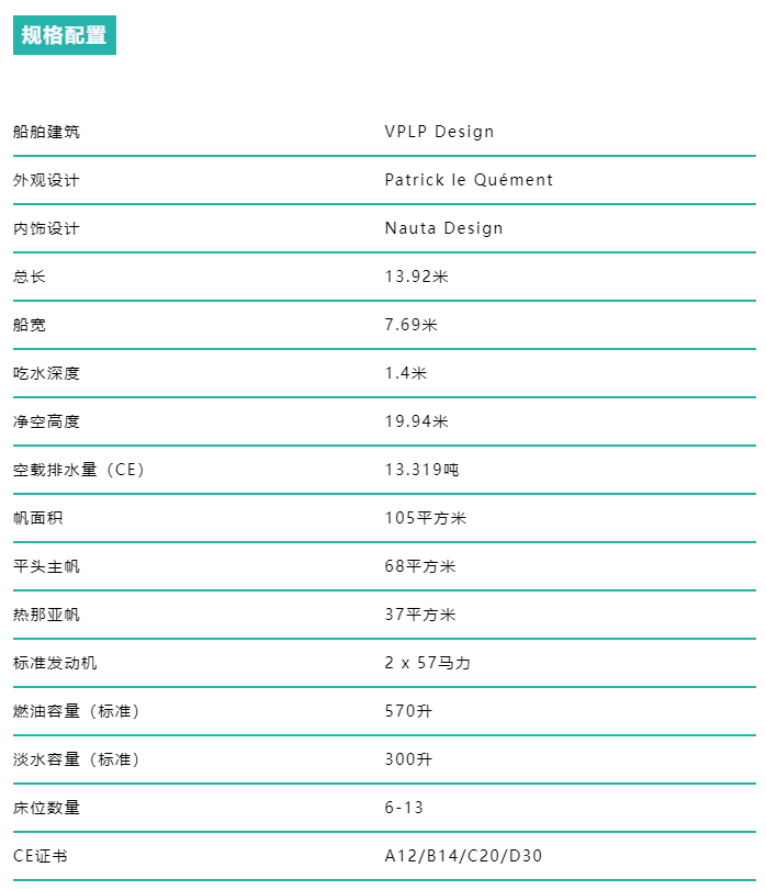 蓝高43的全新船体结构让她具备宽裕的内部空间和更大的床铺配置,每个船舱的体积更大。与市面上同规格的船型相比,提供前所未有的居住空间。