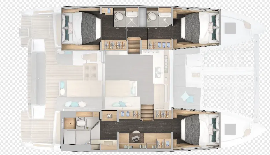 蓝高致力于为您提供一艘空间宽裕,提供愉快而便捷的水上生活的双体船。蓝高43是一艘能够满足不同人群喜好的双体船,让您在海上度过难忘时光。