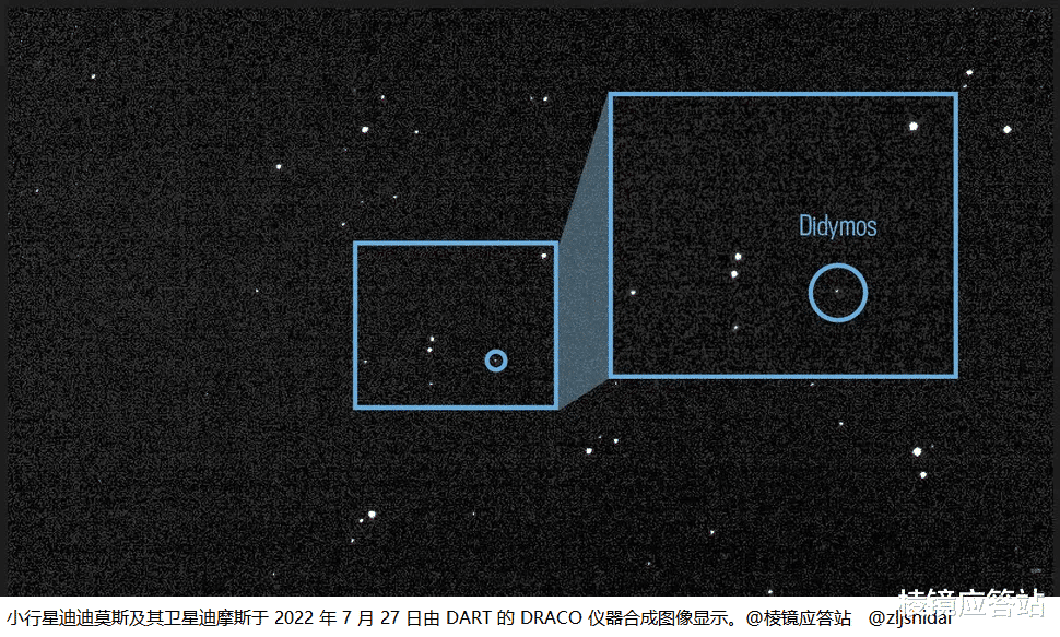 小行星"迪莫弗斯"绕着直径约780米的伴星"迪迪莫斯"运行,轨道周期原为11小时55分钟。撞击之后,这个周期缩短了整整33分钟。