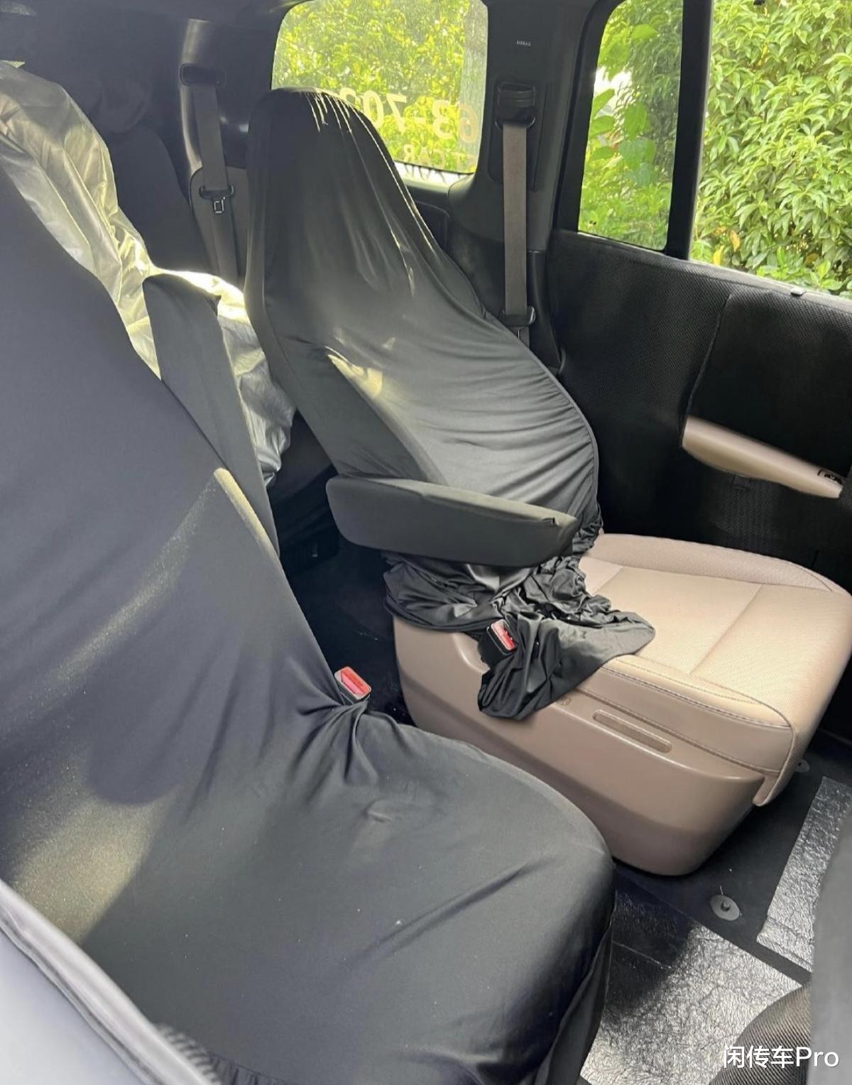前排座椅有着厚实的版型,两侧的护翼进行包裹,提供了不错的舒适体验,撞色内饰配色也是传统的家用风味。第二排双独立座椅当然不会缺席,六座布局清晰可见,有独立扶手,有宽阔的中央过道,不过座椅的配置似乎不算高,没有腿托之类的元素,由于只是测试车,所以不好确定是试装车临时凑合还是将来会有低配版本推出,总之对于一款售价注定在30万元以上的车型,应该不用担心整体的配置表现,肯定会有更高配置版本推出。