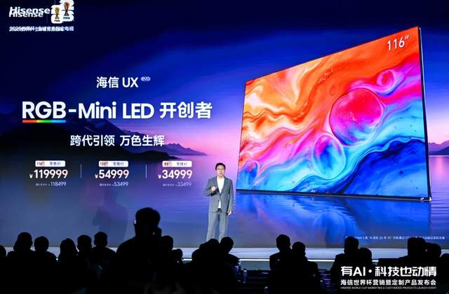 2026年3月5日,显示技术领域迎来一个颇具象征意味的节点。海信正式推出RGB-Mini LED超旗舰电视UX2026款,这款产品的意义不仅在于参数的刷新,更在于它对显示底层逻辑的一次重构——在红绿蓝构成的光学世界中,强行嵌入了一抹“天青色”。