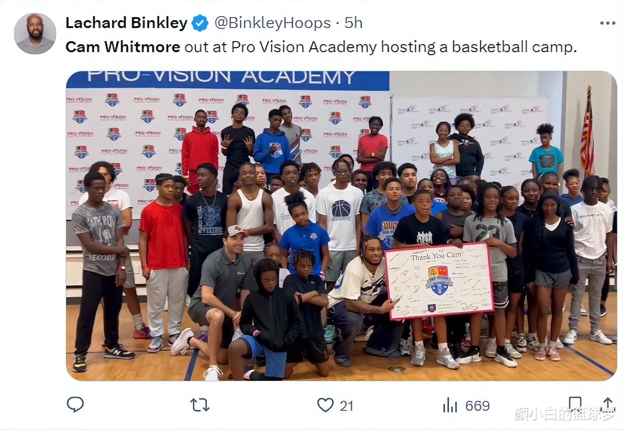 白魔对休斯顿社区的小孩子们也是有求必应,合影、签名都一一应允。白魔实际上是一个内向的孩子,他今年也才20岁而已,上赛季他的表现已经证明他有天赋,大家应该给他多一点包容。