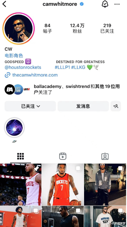 北京时间10月20日,一大早打开火区就出现了一条消息,惠特莫尔在IG上取关了休斯顿火箭队,我一开始并不相信,直到我自己点开白魔的IG。