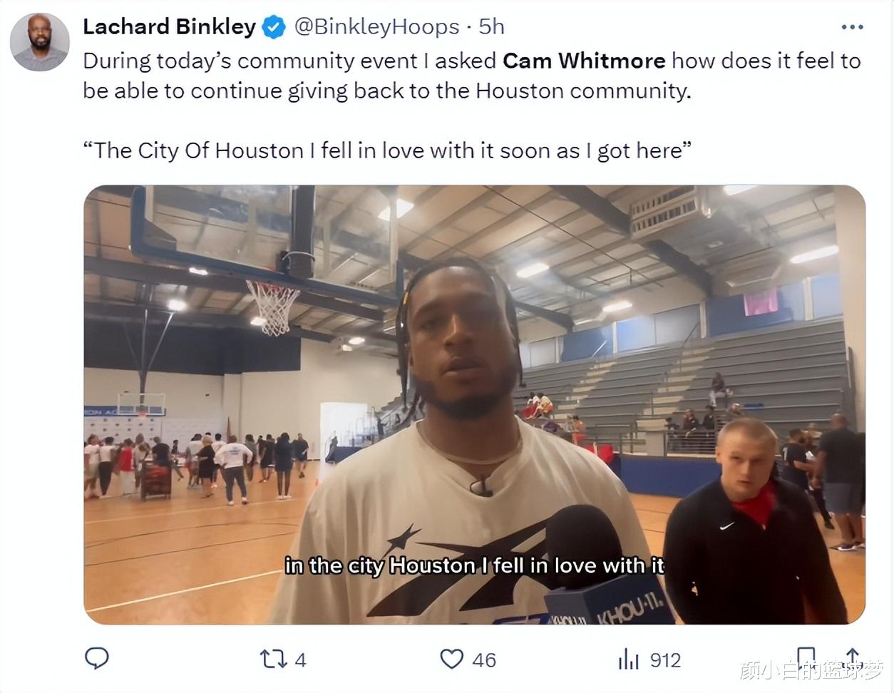 五小时之前,白魔参与了休斯顿的社区活动,他在采访中说道:休斯顿这座城市很好,我刚来这里就爱上了它。(那么白魔取关火箭是闹小脾气?)