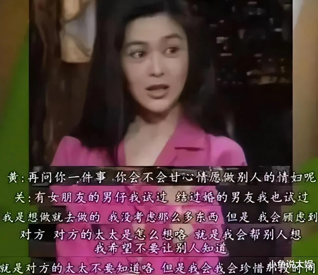 关之琳说过这样一句话:什么样的男人我都试过了,就算是结过婚的,我也都试过了。