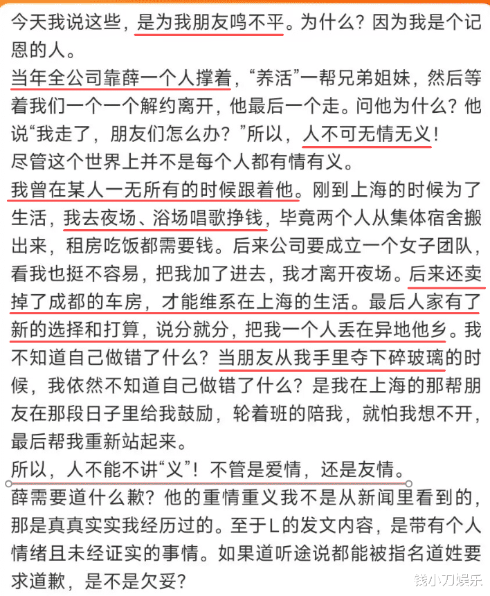 段曦说薛之谦根本不需要道歉,因为有情有义养活一帮兄弟姐妹,结果那些人却一个接一个解约。