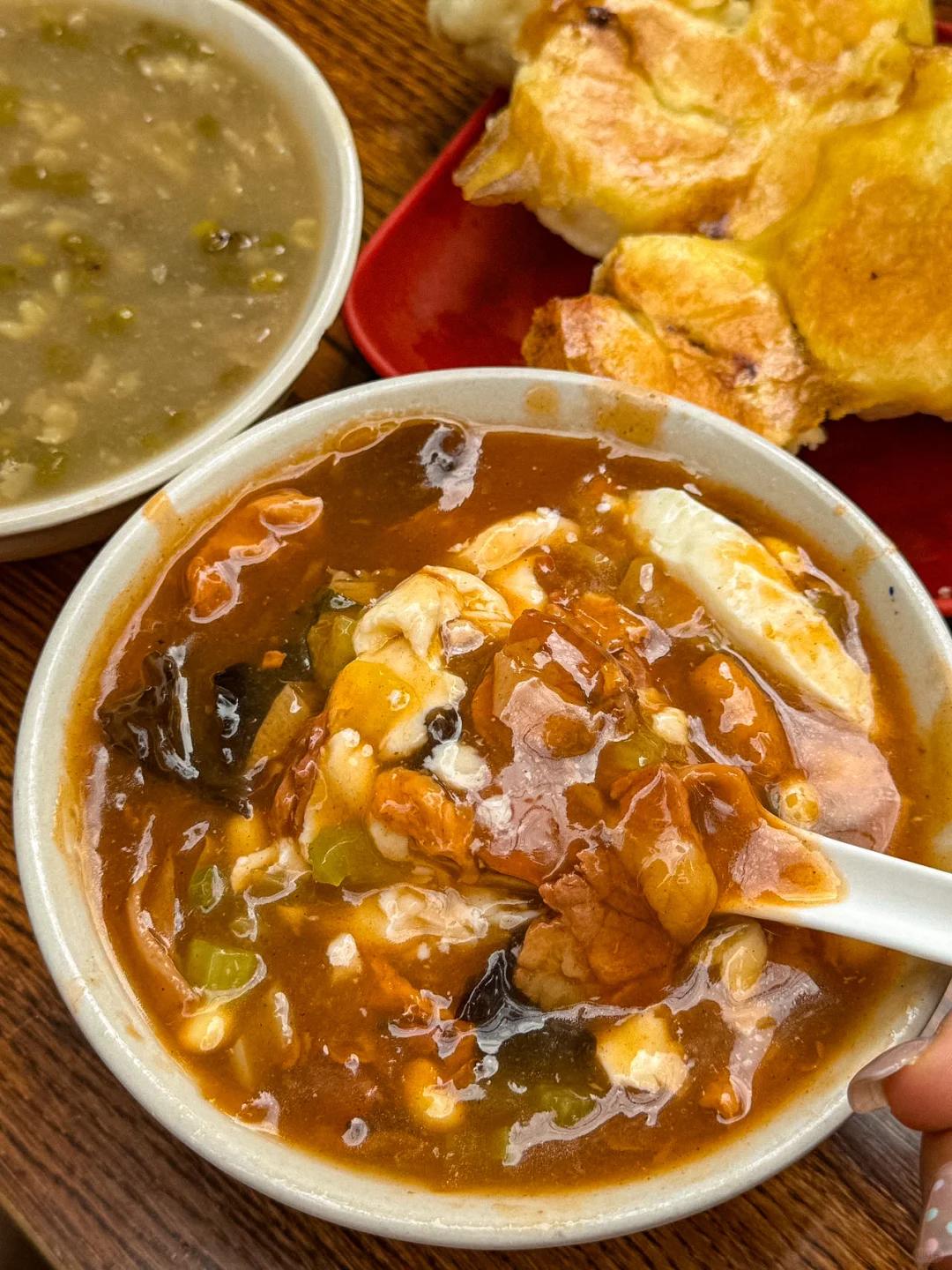 胡辣汤的制作方法是把多种食材,如粉条、豆腐丝、花生米、海带丝等,放入锅中,加入用胡椒、辣椒等多种调料熬制的汤里煮熟。这汤的口感辛辣刺激,味道浓郁。对于河南本地人来说,早上来一碗胡辣汤,配上两根油条,那就是开启美好一天的最佳方式。可外地人第一次喝胡辣汤的时候,往往会被那浓烈的辣味和胡椒味呛到,觉得这汤太辣太冲了,难以接受。