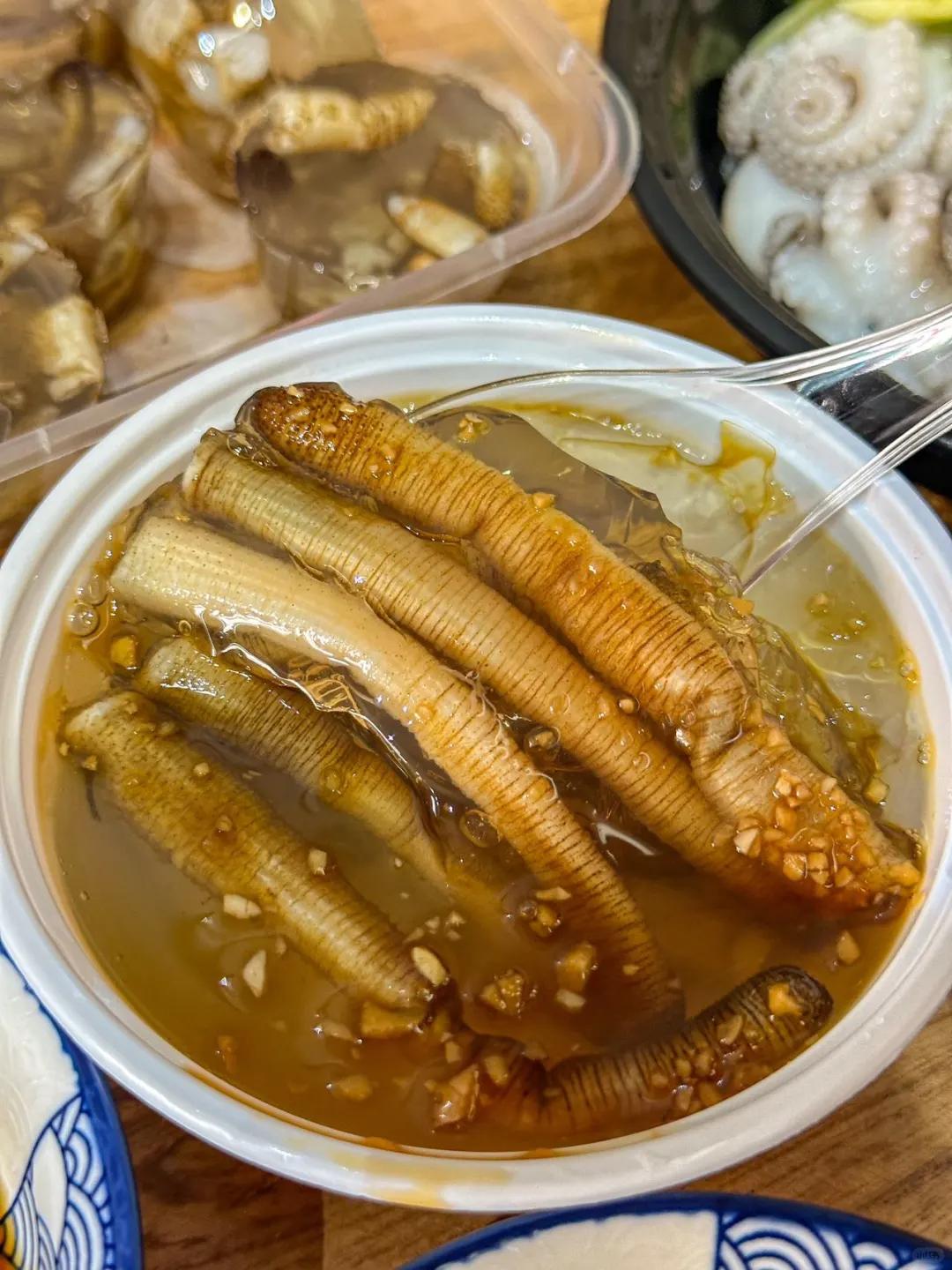 把土笋冻切成小块,放入汤里煮。这汤的口感很特别,土笋冻吃起来QQ弹弹的,还有一种淡淡的海鲜味。但是外地人看到那形似蚯蚓的沙虫,心里就会觉得很害怕,更别说喝这汤了。很多外地人觉得土笋冻汤的样子太吓人了,接受不了这种美食。