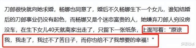 杨娜留下这张纸条后,就丢下刀郎和刚出生40天的女儿走了,没有人知道刀郎是如何挺过来那段艰苦的日子。