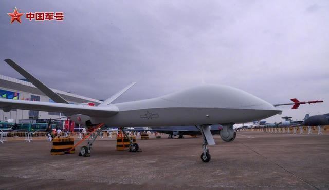 第十五届中国航展地面静态展区展出的新型察打一体无人机。