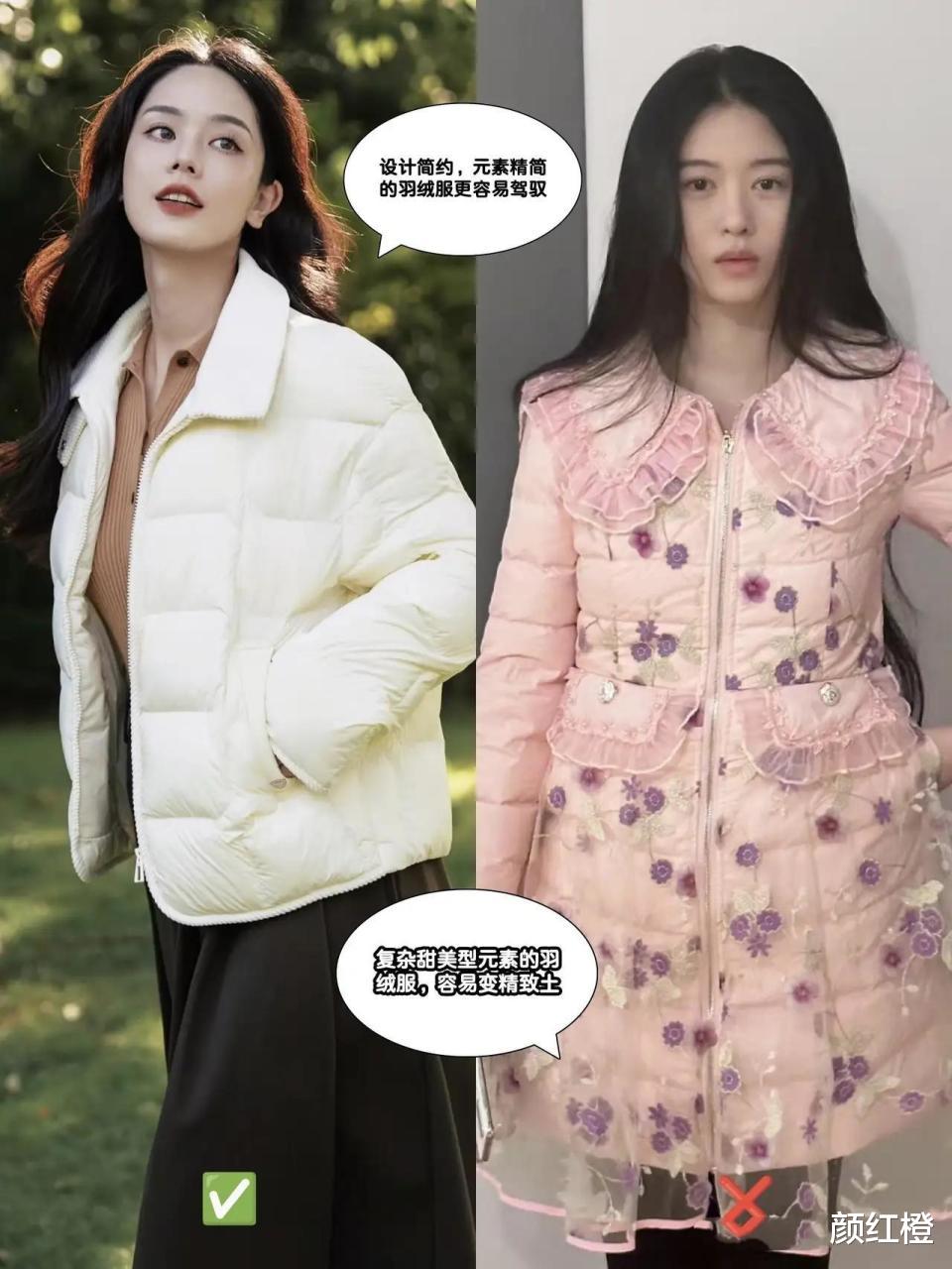 寒冷的冬天,马上要来临,我们肯定会要选羽绒服,选择不对,整个人的穿搭就会显胖显土,例如下面左边的这件羽绒服,穿在身上就会暴露自身的腰间赘肉。