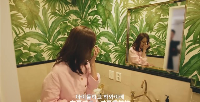 比如,她将公共洗手间,布置成热带雨林风,是因为孩子们(一儿一女)在夏威夷上过夏季学校。