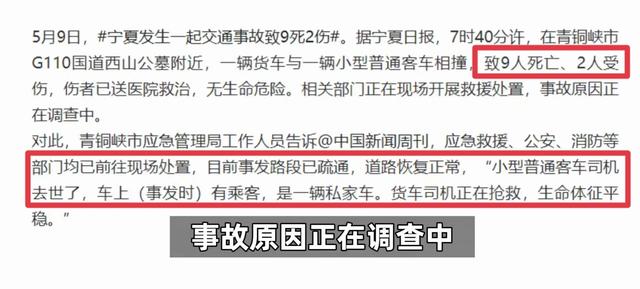 5月9日,宁夏突发的一起车祸传遍网络,事故造成9死2伤,令人心碎。