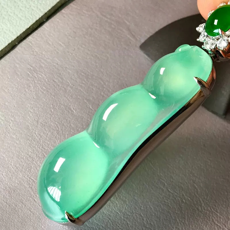 即使一块完全绿色的豆种翡翠,即使颜色再纯正鲜亮,但如果缺乏良好的种水,它看起来就会显得毫无生气,干燥无趣。